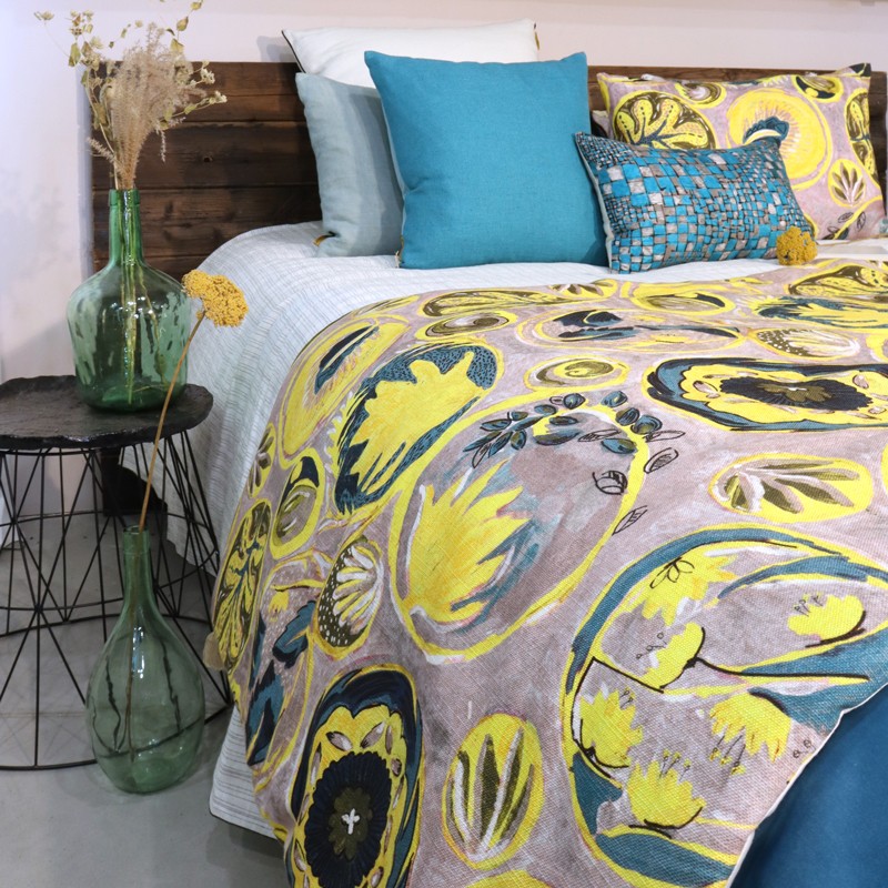 Courtepointe avec un recto Lalie Design et un verso en coton uni, chaque coin se termine par un pompon. De part leur taille, elles sont idéales pour embellir vos lits et enchanter vos nuits.