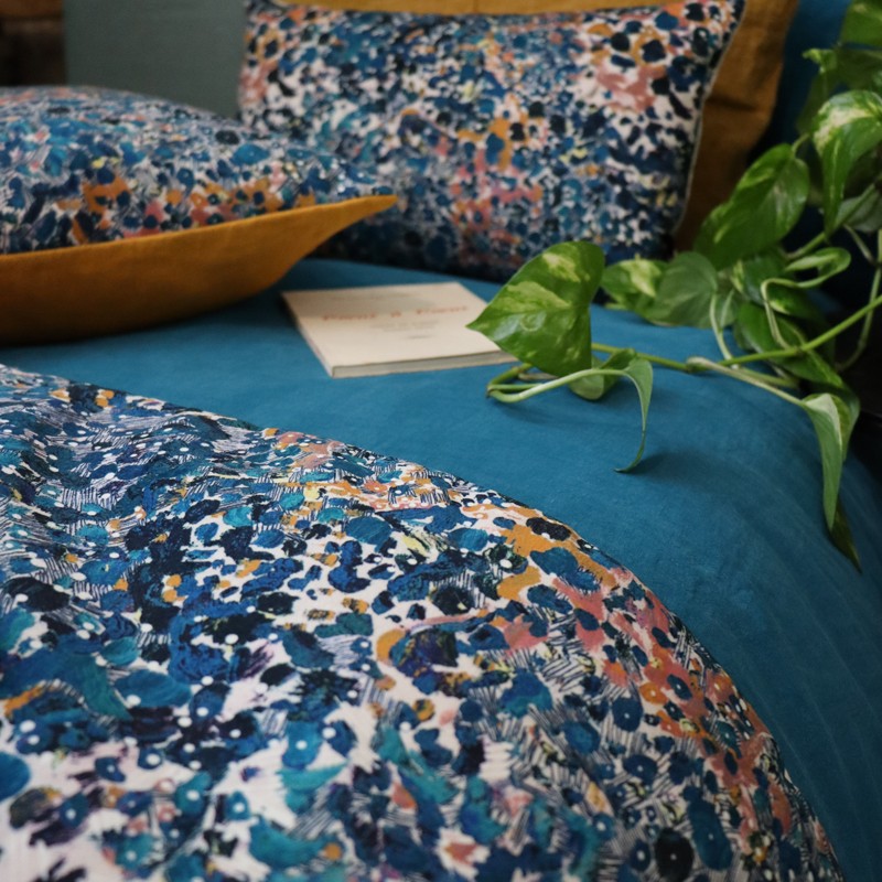 Courtepointe avec un recto Lalie Design et un verso en coton uni, chaque coin se termine par un pompon. De part leur taille, elles sont idéales pour embellir vos lits et enchanter vos nuits.