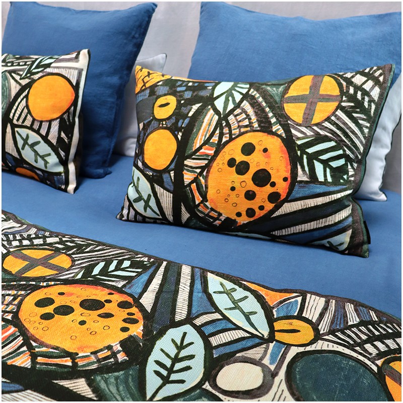 Courtepointe avec un recto Lalie Design et un verso en coton uni, chaque coin se termine par un pompon. De part leur taille, elles sont idéales pour embellir vos lits et enchanter vos nuits.