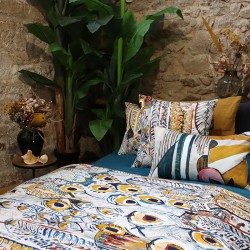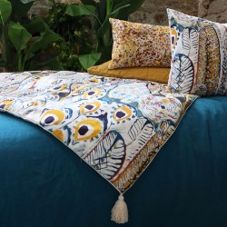 Courtepointe avec un recto Lalie Design et un verso en coton uni, chaque coin se termine par un pompon. De part leur taille, elles sont idéales pour embellir vos lits et enchanter vos nuits. Création et fabrication Française.