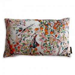 Les coussins sont tirés du tissu au mètre, le motif varie en fonction du placement à la coupe.