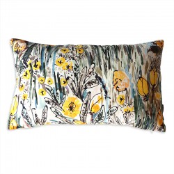 Les coussins sont tirés du tissu au mètre, le motif varie en fonction du placement à la coupe.