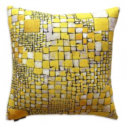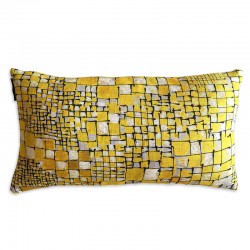 Les coussins sont tirés du tissu au mètre, le motif varie en fonction du placement à la coupe.
