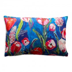 Les coussins sont tirés du tissu au mètre, le motif varie en fonction du placement à la coupe.