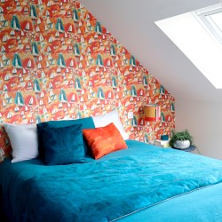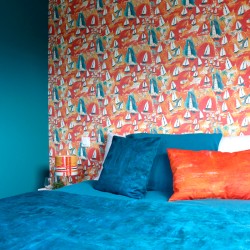 La créatrice s’est inspiré des graphismes des années 30 pour créer cet imprimé frais et poétique.