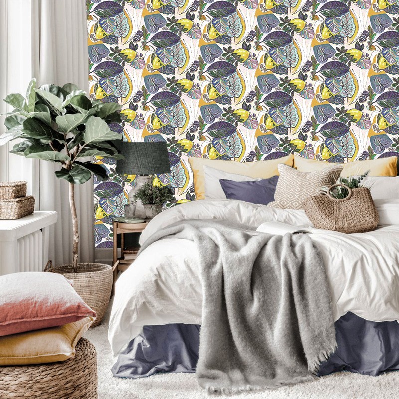 Ambiance acidulée et contrastée avec ce motif somptueux et poétique, sur un support velouté.