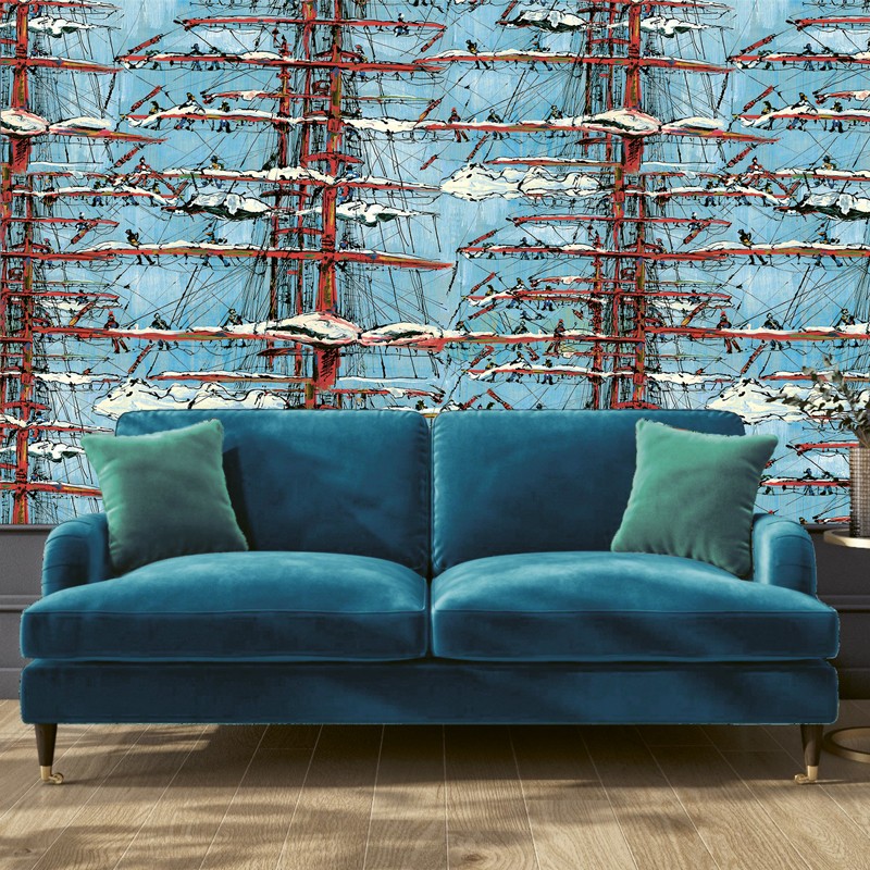 Au coeur de cette fresque murale, un majestueux navire à 3 mats se dresse fièrement sur un ciel dégagé. HISSE ET HO… Ca s’active sur le mat de ce gigantesque vaisseau.