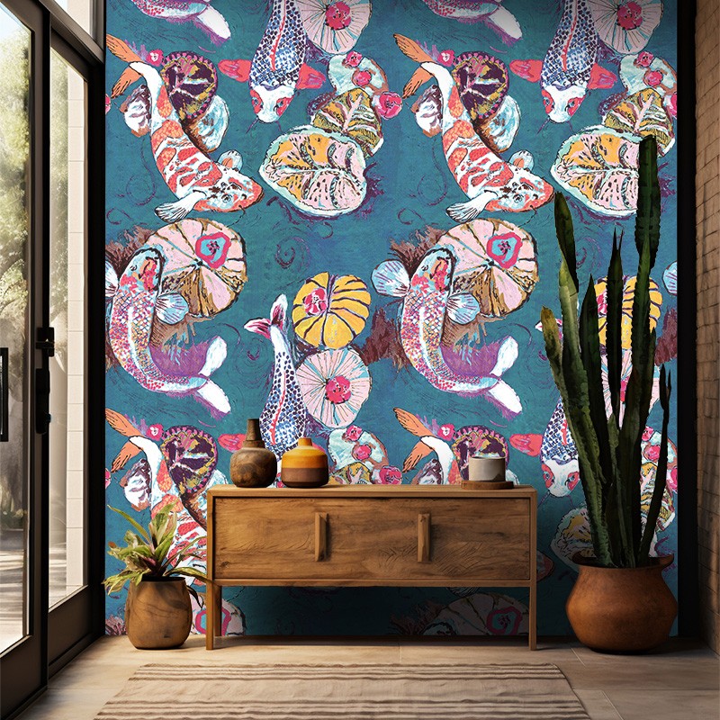 Très emblématiques, les carpes Koï japonaises, ici dessinées par la créatrice Marie-Adeline Riche, nous offrent un véritable tableau.