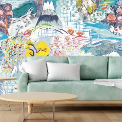 La créatrice : " Pour ce dessin, j’ai été inspiré par l’Asie et une forte envie de voyage… Je rêve de voir des sommets enneigés et des jardins japonais à la saison des cerisiers en fleurs… "
