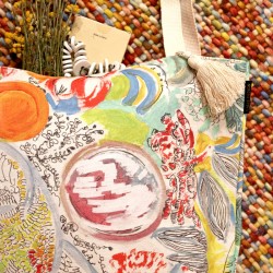Un dessin extravagant de la créatrice qui vient une nouvelle fois défier notre imaginaire. Rondeur, expressionnisme, chaos et savant mélange de couleurs viennent former une composition musicale et rythmique digne d’une symphonie, avec le thème floral toujours présent.