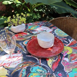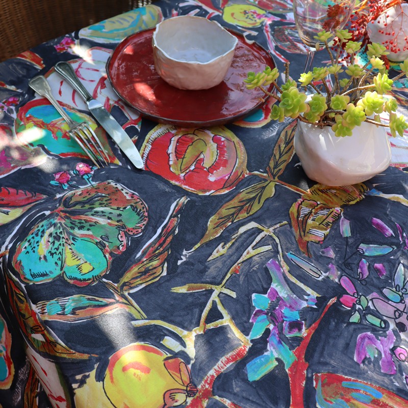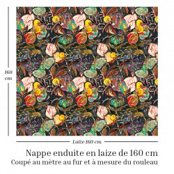 ENTRETIEN: La Nappe enduite s'entretient d'un coup d'éponge humide après chaque repas. Le lavage en machine est possible occasionnellement à 30°C sans produit adoucissant ni essorage. Le repassage est obligatoire sur l'envers en position coton pour réactiver l'enduction.