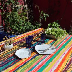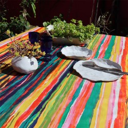 ENTRETIEN : La Nappe enduite s'entretient d'un coup d'éponge humide après chaque repas. Le lavage en machine est possible occasionnellement à 30°C sans produit adoucissant ni essorage. Le repassage est obligatoire sur l'envers en position coton pour réactiver l'enduction.
