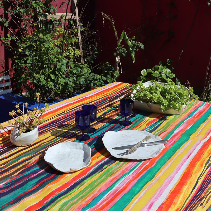 Une rayure pas comme les autres aux couleurs éclatantes pour associer à différents imprimés. Lignes irrégulières ondulantes qui s’étirent à l’infini.