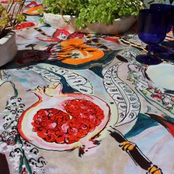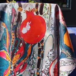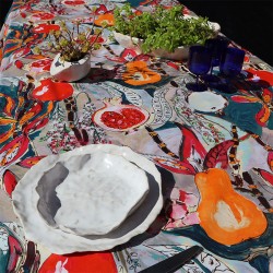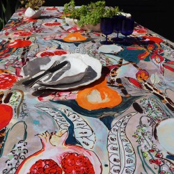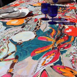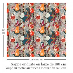 ENTRETIEN : La Nappe enduite s'entretient d'un coup d'éponge humide après chaque repas. Le lavage en machine est possible occasionnellement à 30°C sans produit adoucissant ni essorage. Le repassage est obligatoire sur l'envers en position coton pour réactiver l'enduction.
