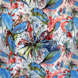 Un graphisme explosif d’une végétation vibrante, avec un mariage de couleurs douces et denses.