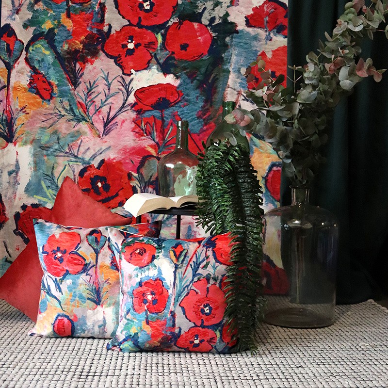 Réédition du tissu love ficelle. Lalie décline une nouvelle gamme pour cet imprime au thème intemporel. Cette fois ci, c’est sur un support velours que ces coquelicots rouges passion s’illustrent. Ici, le Big LOVE en taille XXL pour un effet wahou!