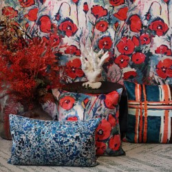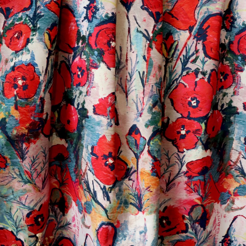 Réédition du tissu love ficelle. Lalie décline une nouvelle gamme pour cet imprime au thème intemporel. Cette fois ci, c’est sur un support velours que ces coquelicots rouges passion s’illustrent.