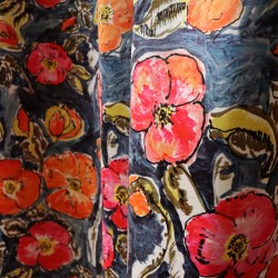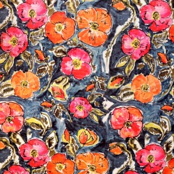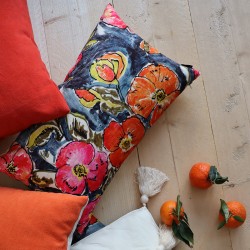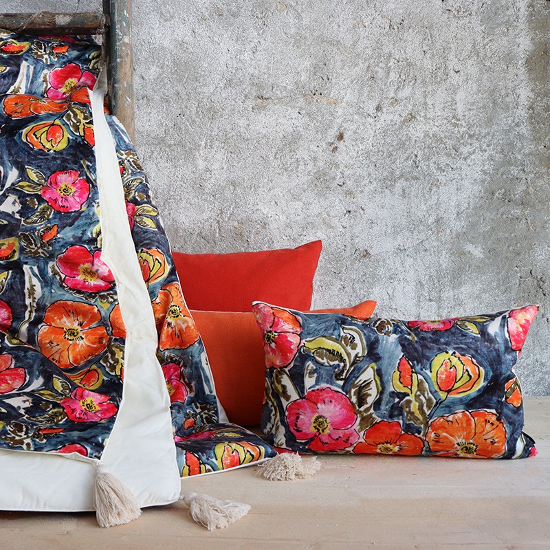 Un imprimé moderne aux traits naïfs, Poppies et ses couleurs bleu marine, rose et orange, se mariera aussi bien avec des tons chauds, que froids.