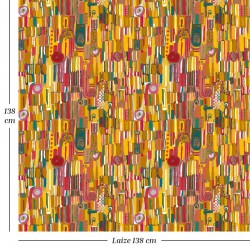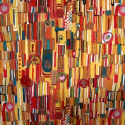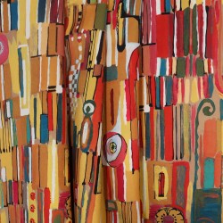Verticalité répétitive enrichie de médaillons inflorescents pour ce motif évoquant la culture incas.