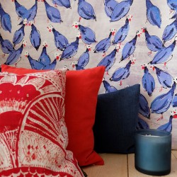 En cadence, ces pintades de Numidie au bleu électrique feront danser votre imaginaire. Dans votre intérieur, pensez à lui associer la palette des parmes aux bleu-violets tout en y ajoutant la pointe de framboise et l’éclat des blancs.