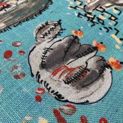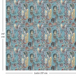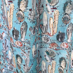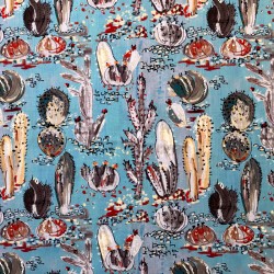 Ce tissu fait partie d’un univers faisant référence à l’exotisme, thème cher à la créatrice. Dans cette palette fraiche et estivale, ce motif nous transporte sur la côte Est du Mexique, sous le soleil des Caraïbes.