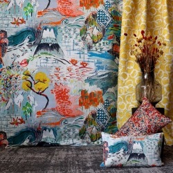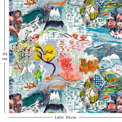 La créatrice : " Pour ce dessin, j’ai été inspiré par l’Asie et une forte envie de voyage… Je rêve de voir des sommets enneigés et des jardins japonais à la saison des cerisiers en fleurs…"