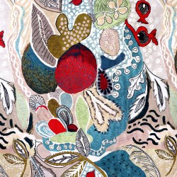 Titaïna est une composition hétéroclite de motifs abstraits et colorés. Ce dessin nous ouvre les portes d’un univers imaginaire.