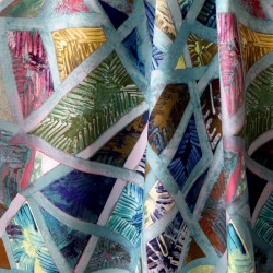 Moucharabié s’inspire de ces grillages de bois typiques de l’architecture islamique et laisse apparaitre un maillage irrégulier. En fond se détachent des formes géométriques habillement hachurées de couleurs. Ce tissus à l’effet décoratif unique n’est pas sans rappeler également un vitrail ou carrelage complexe et saisissant. Extrêmement robuste, ce tissus est idéal pour la fabrication de sièges à usage intensif.