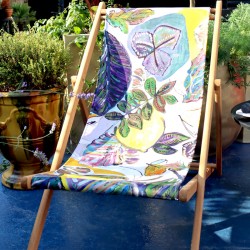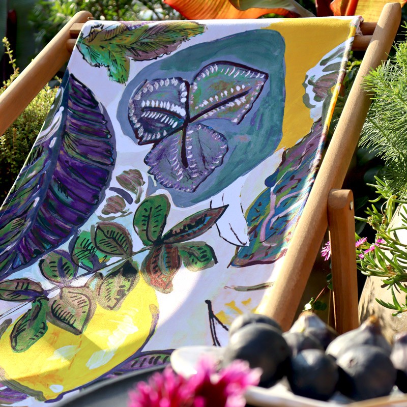 Structure chilienne en hêtre massif finition lasurée teck, fabriquée en Union Européenne, avec une toile déhoussable Lalie Design, impression et fabrication origine France garantie.