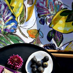 Ambiance acidulée et contrastée avec ce motif somptueux et poétique, sur un support velouté.