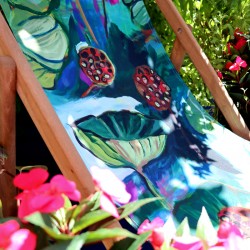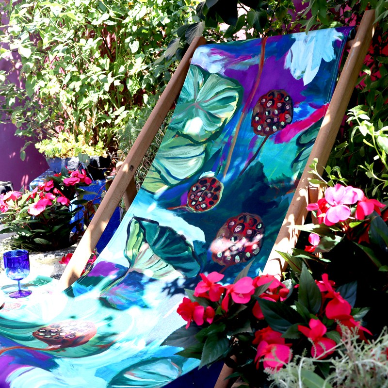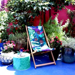 Structure chilienne en hêtre massif finition lasurée teck, fabriquée en Union Européenne, avec une toile déhoussable Lalie Design, impression et fabrication origine France garantie.
